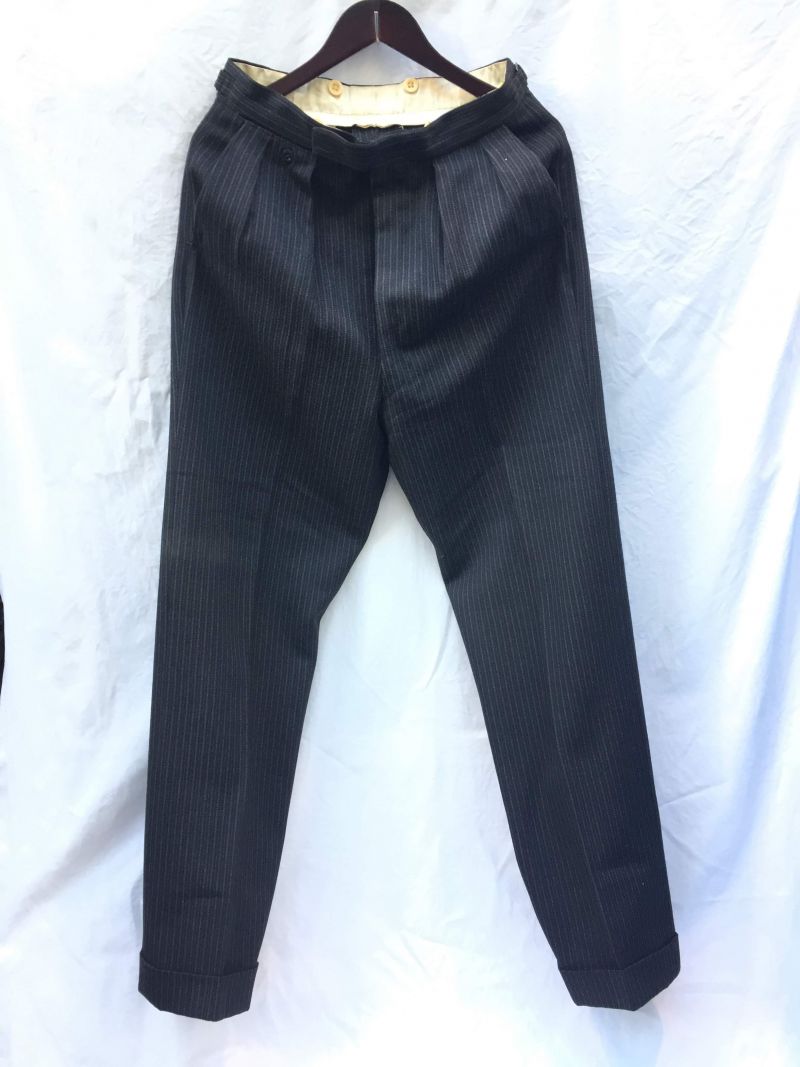 フロントは2タックに、ボタンの付いたウォッチポケットと